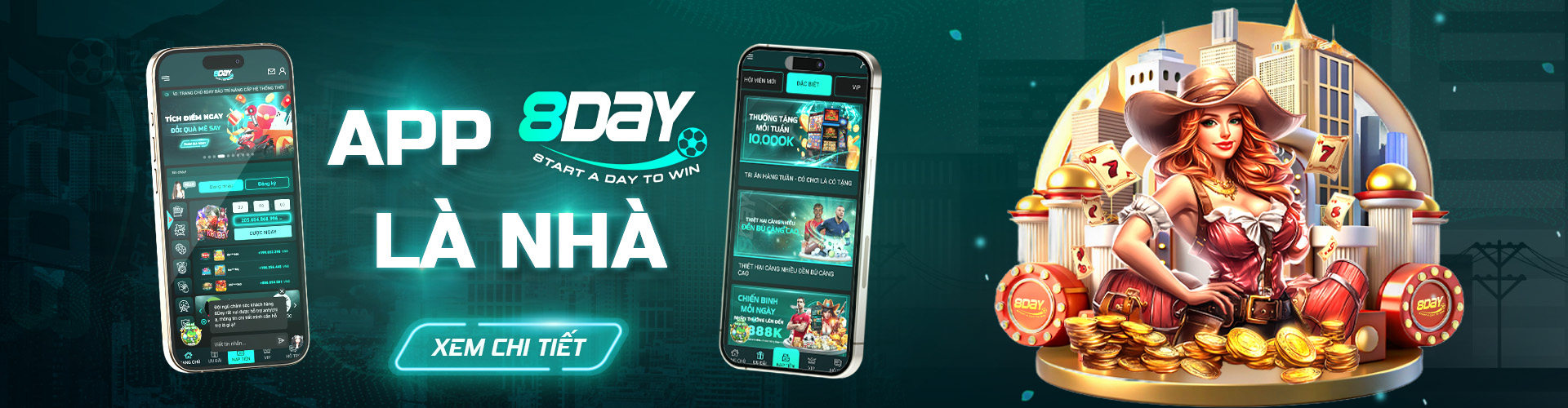 8Day là một trong những nhà cái trực tuyến uy tín hàng đầu hiện nay, được đông đảo người chơi lựa chọn. Với kho game đa dạng, tỷ lệ cược hấp dẫn và dịch vụ khách hàng chuyên nghiệp, 8Day đã khẳng định vị thế của mình trên thị trường cá cược trực tuyến.